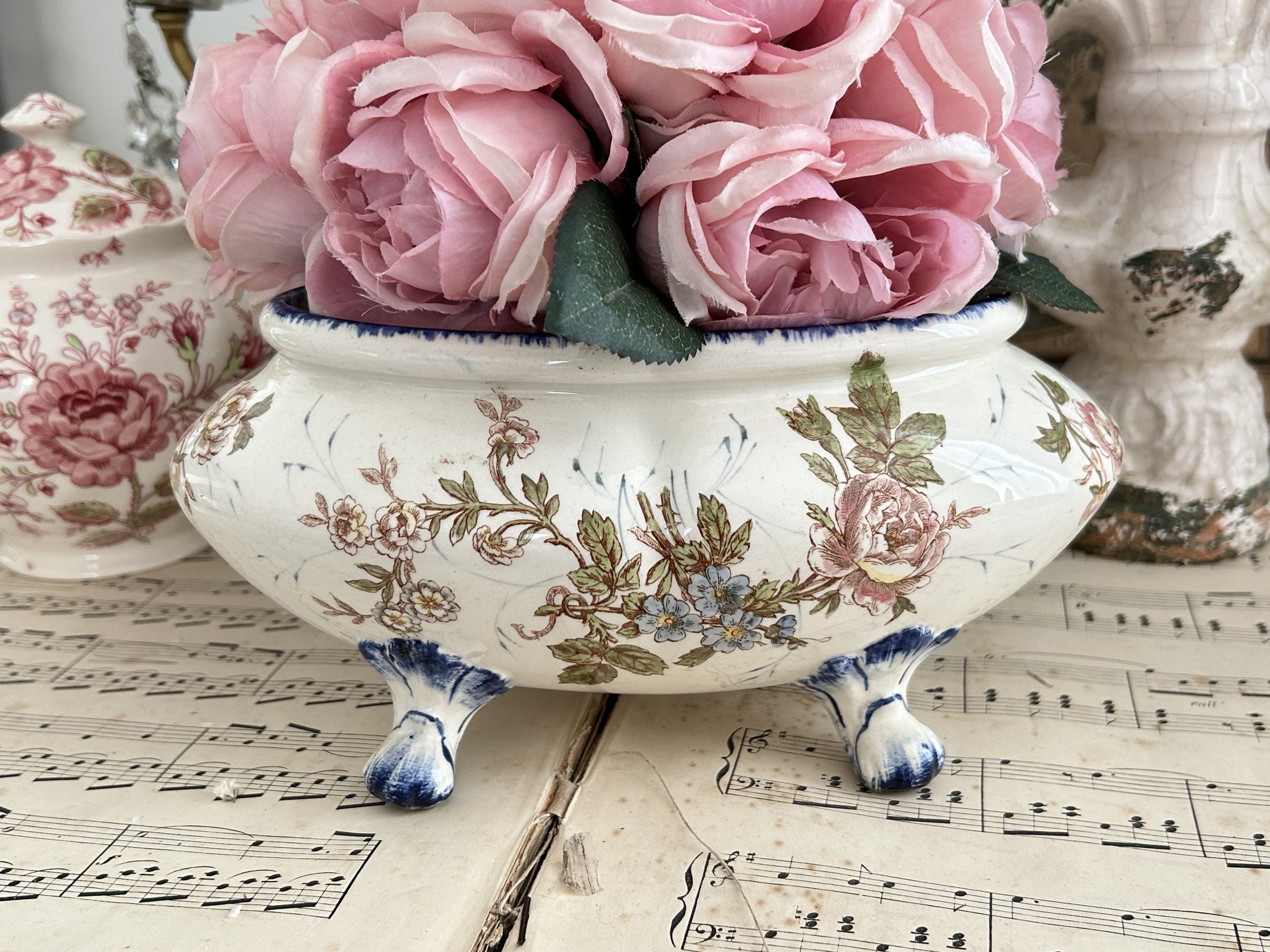 on notera le romantique décor floral, différent de chaque côté.