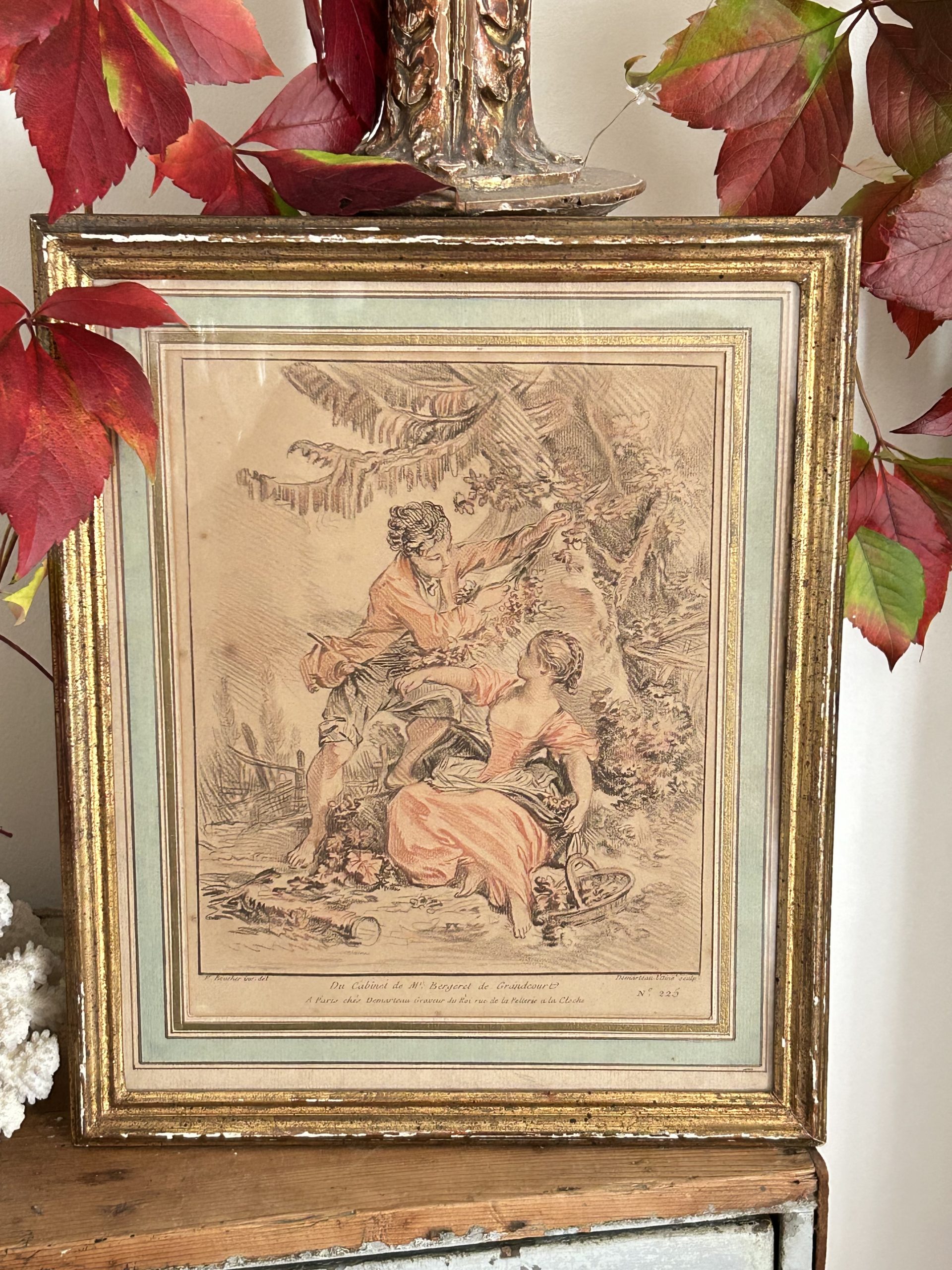 Une bien charmante gravure datant du début XIXème, verre et encadrement d’origine.