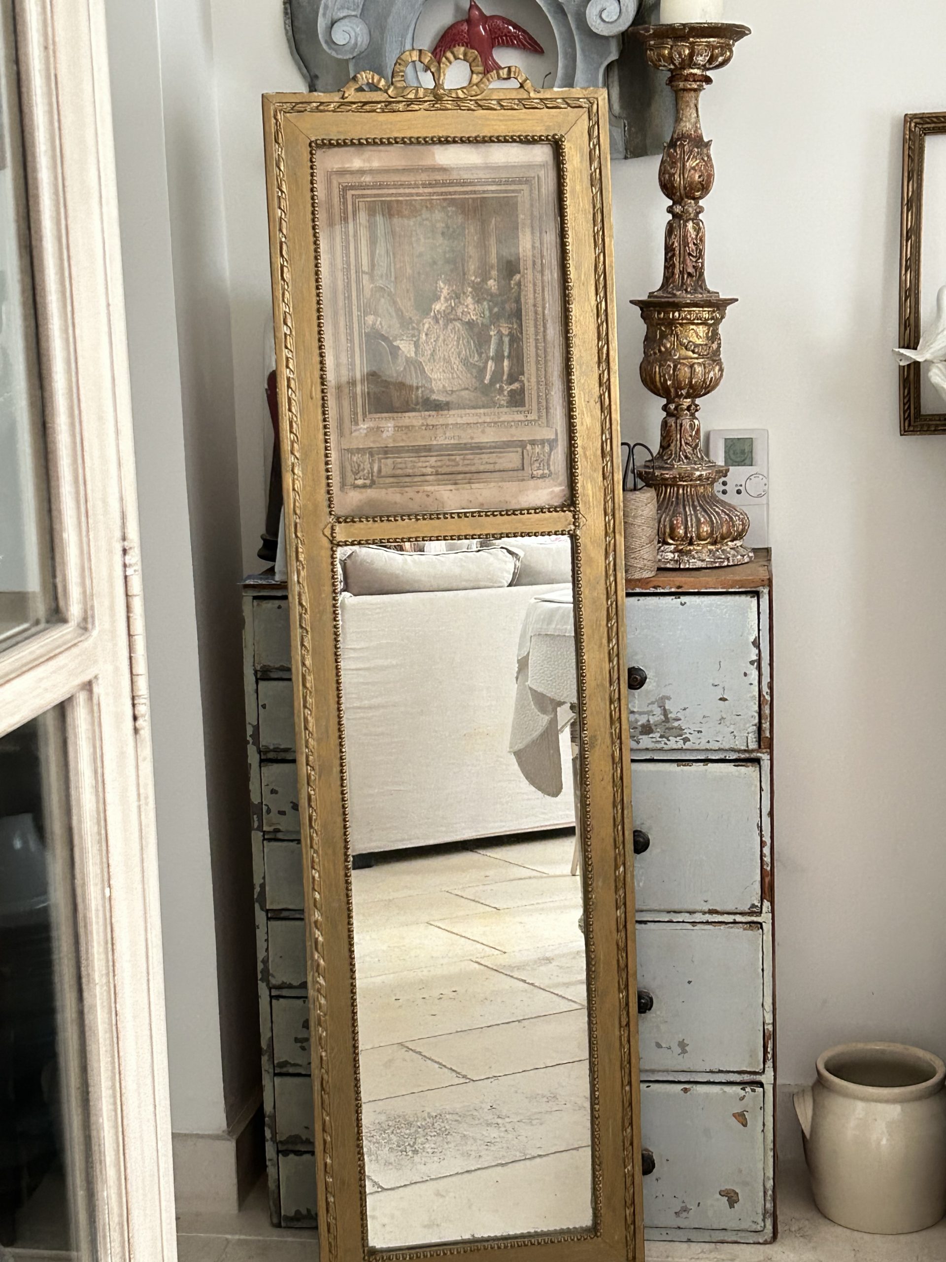 Un très beau miroir trumeau en bois doré, de style Louis XVI