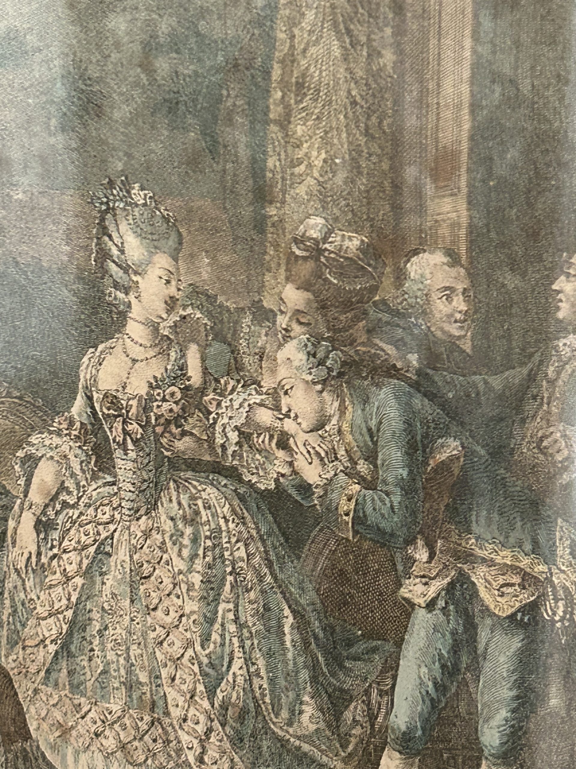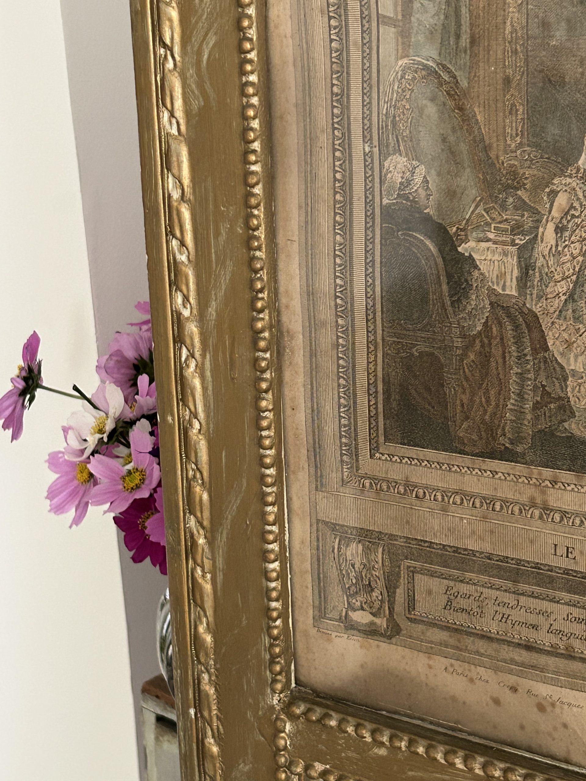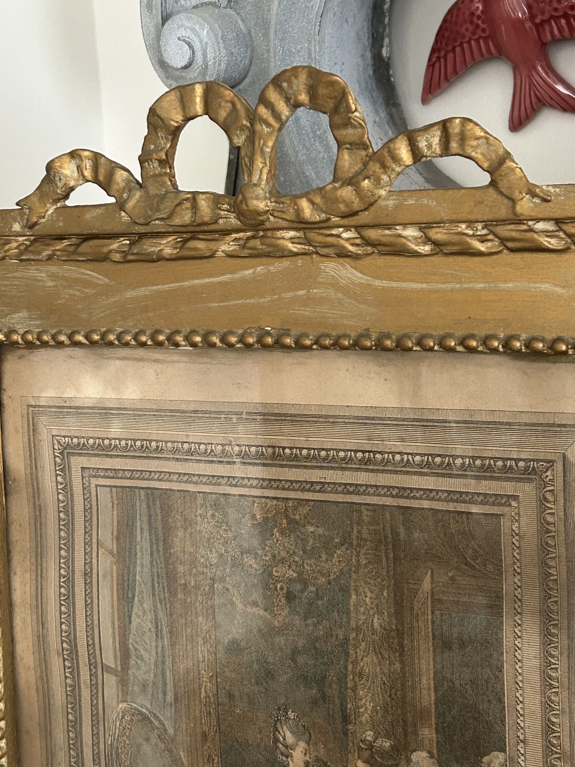 La partie supérieure est agrémentée d’une gravure de style Louis XVI également d’origine.