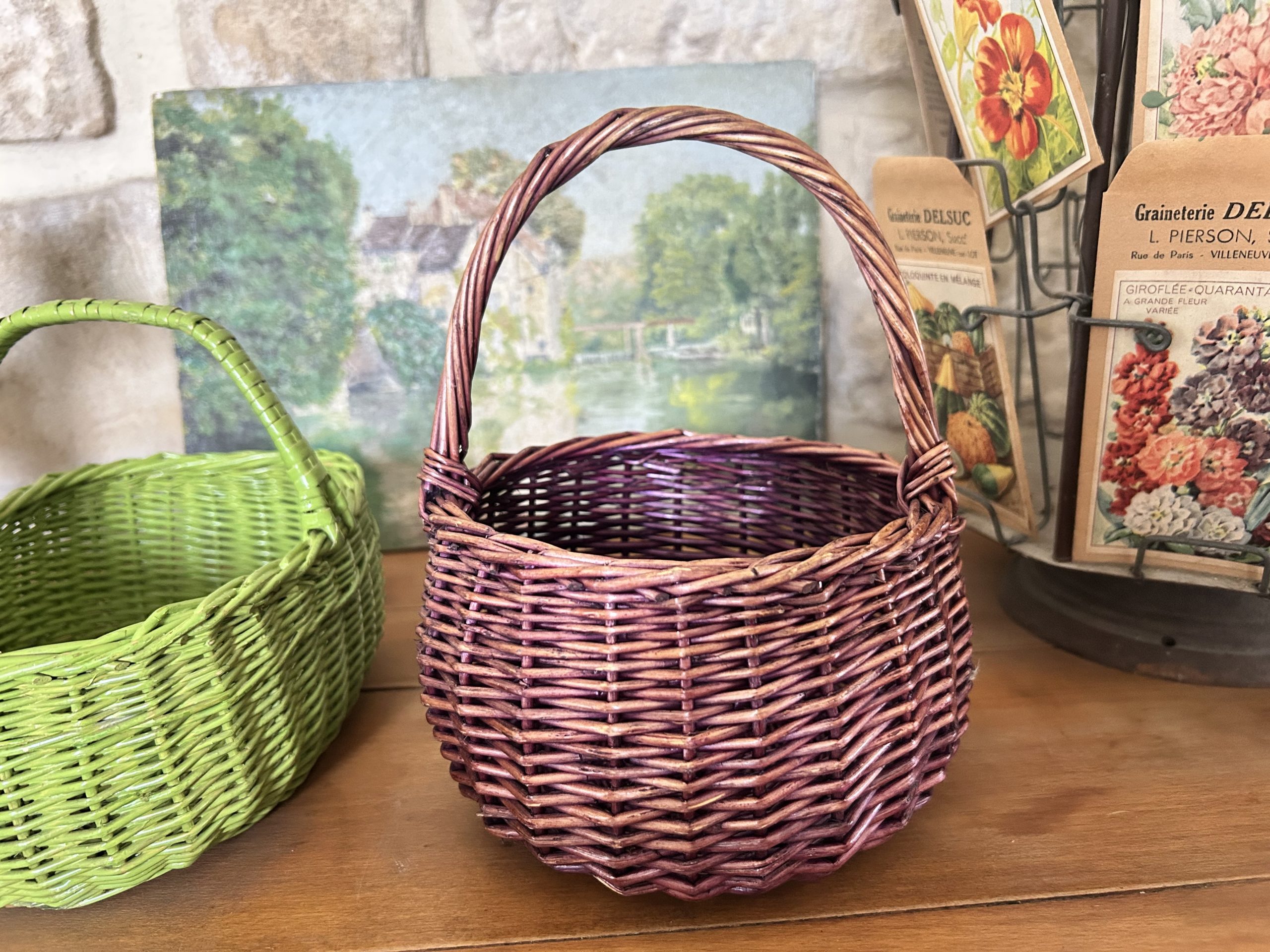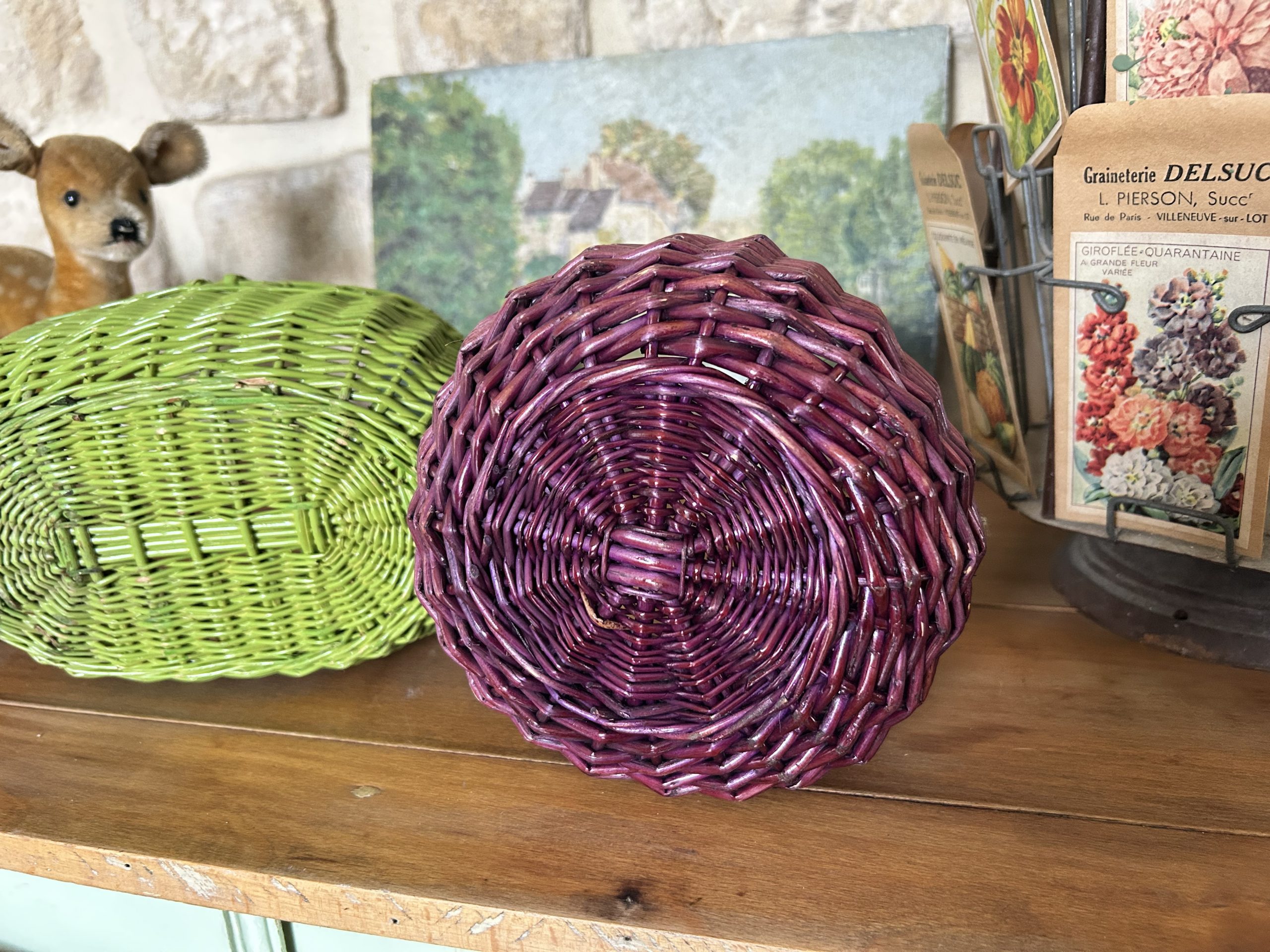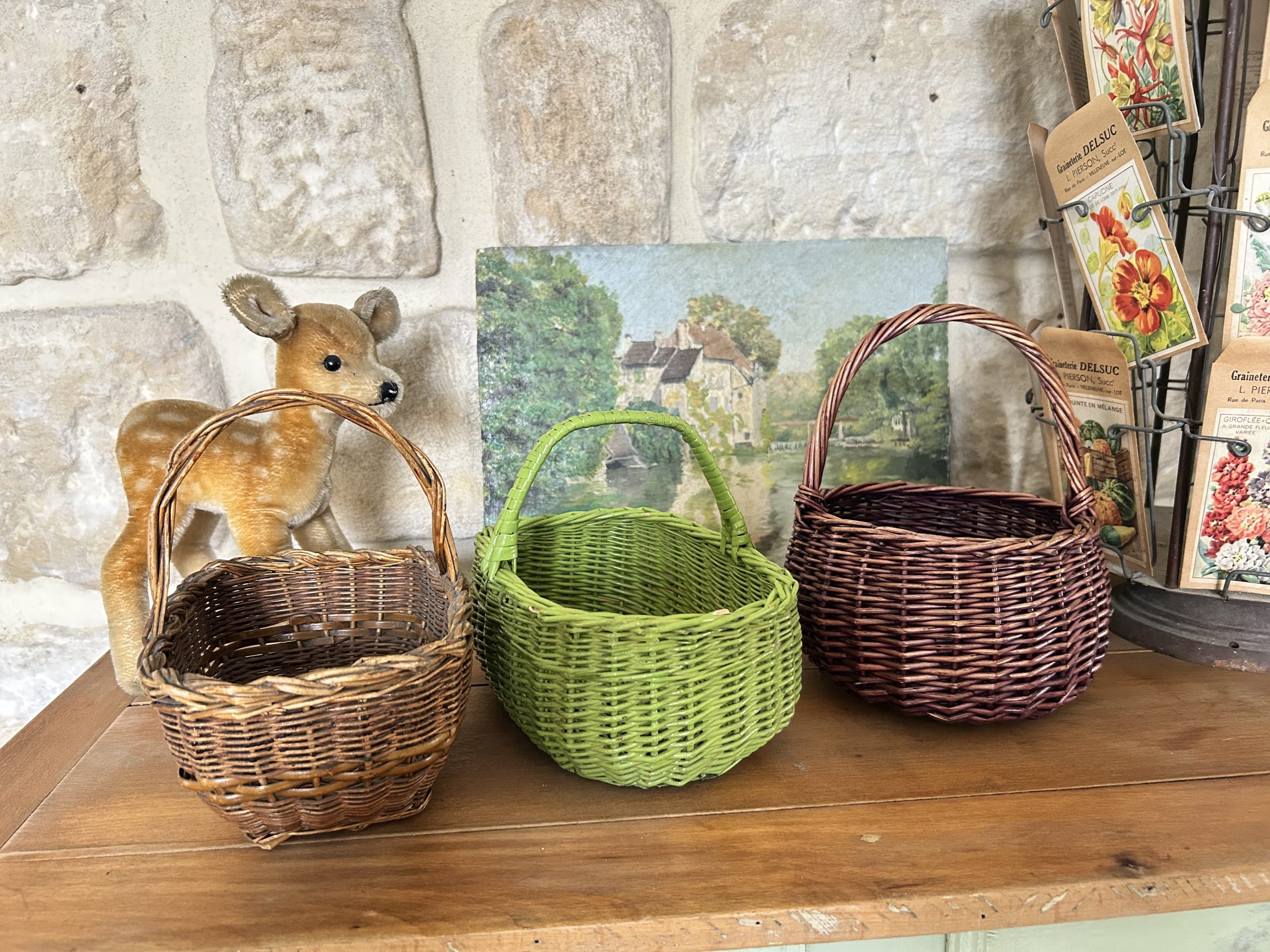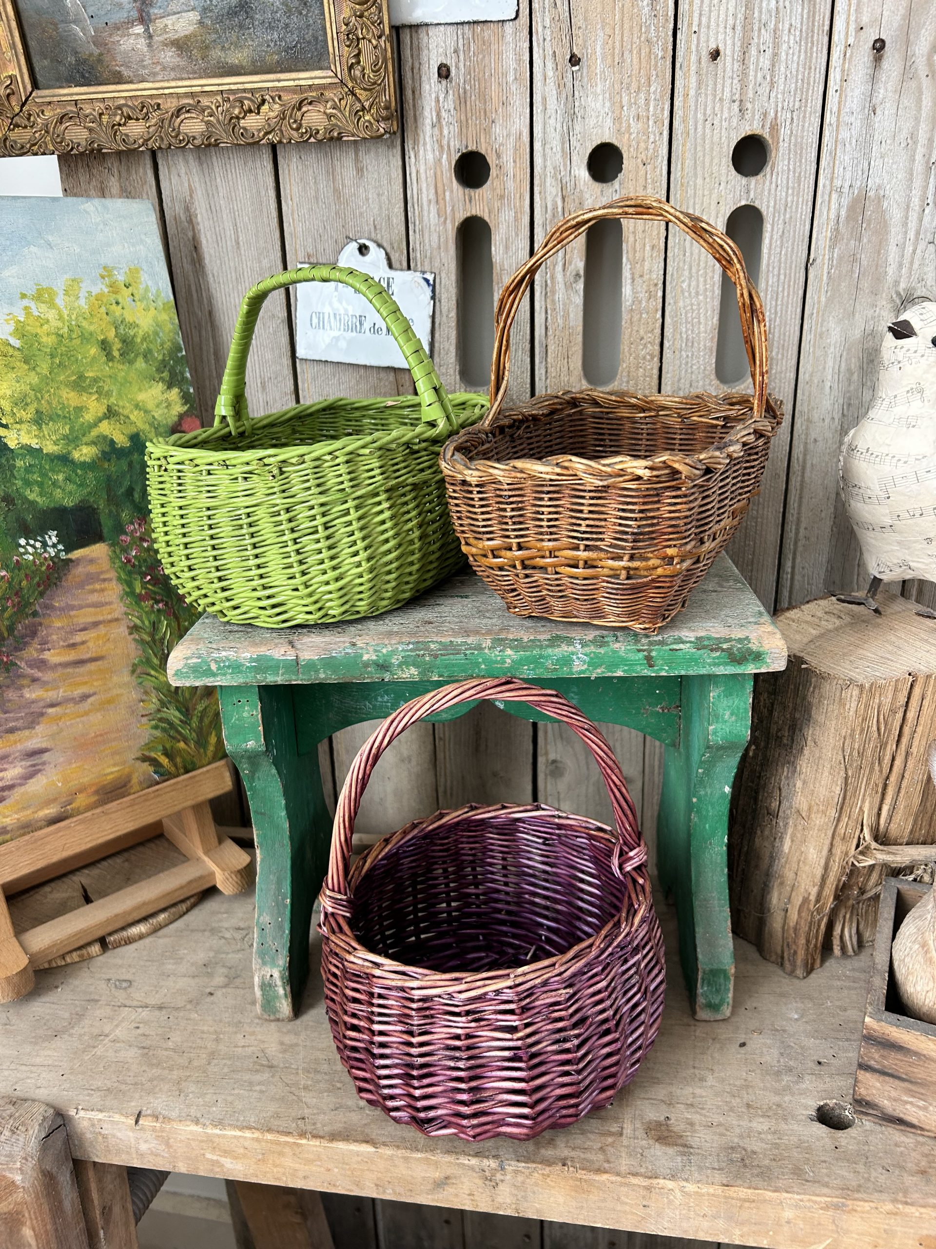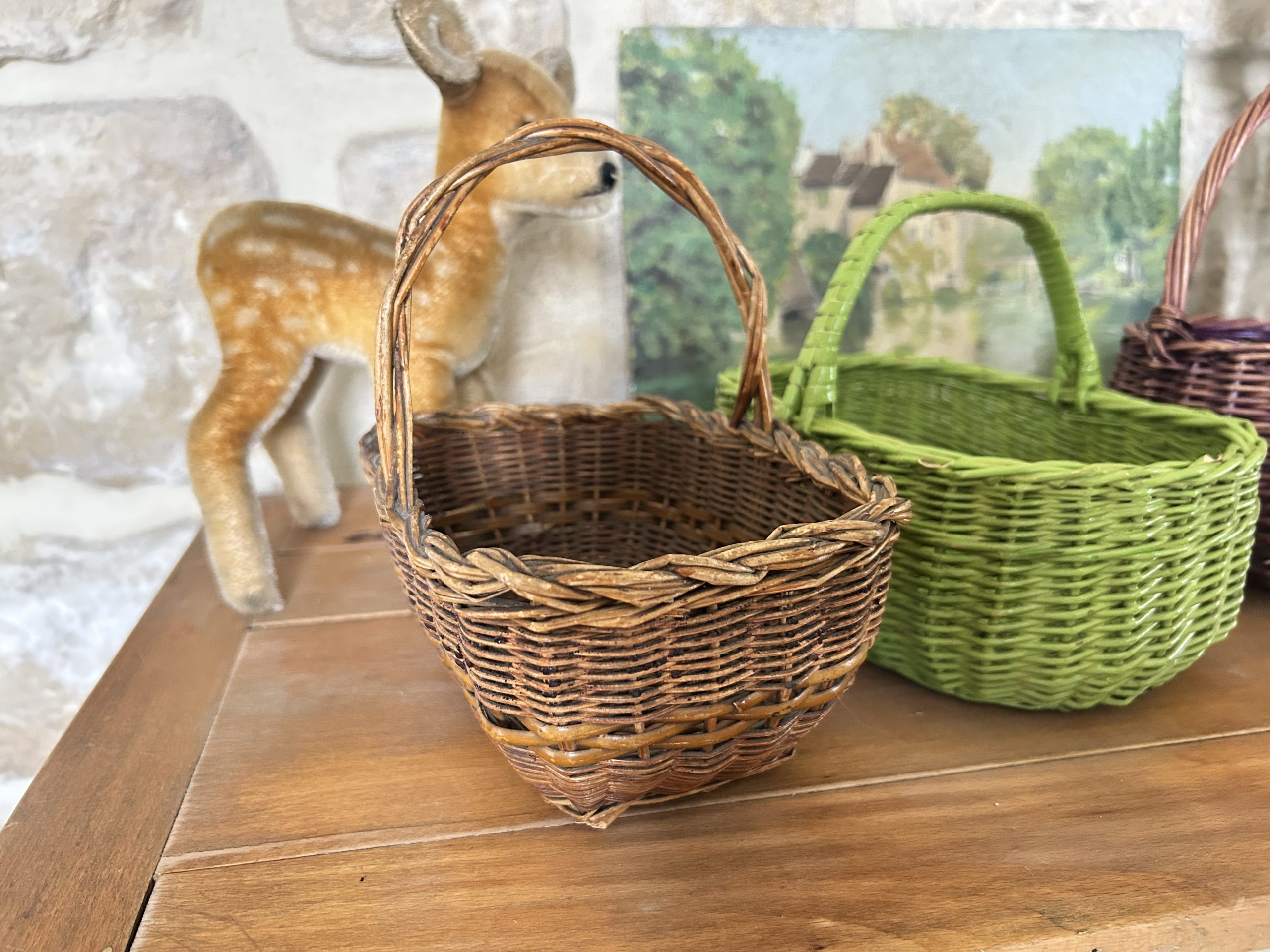 3 anciens petits paniers en osier,